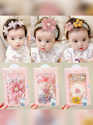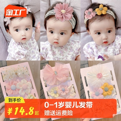 0-1岁婴儿发带女宝宝护囟门帽头花新生儿公主周岁头饰蝴蝶结发箍