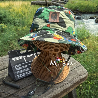 日系儿童夏季防晒帽男女童印花轻薄速干渔夫帽宝宝遮阳帽盆帽凉帽