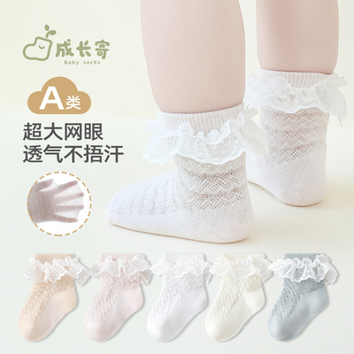 婴儿袜子夏季薄款网眼透气镂空蕾丝花边夏天公主女宝宝松口中筒袜