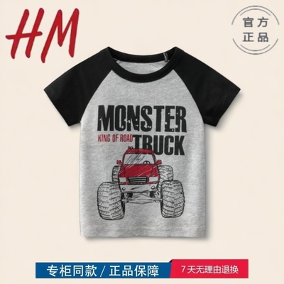 HM官方旗舰店特价撤柜童装中小童韩版休闲T恤衣男童汽车图案9735