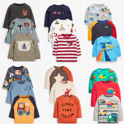 现货英国Next童装春秋男童男宝宝纯棉卡通刺绣长袖圆领T恤上衣3件