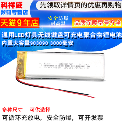 通用3.7V锂电池LED灯长条形903090录音笔无线鼠标内置电池可充电